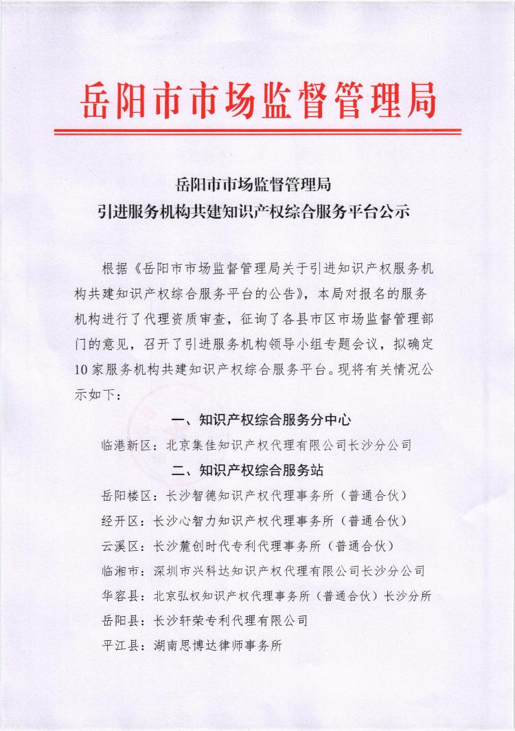 引进服务机构共建知识产权综合服务平台公示