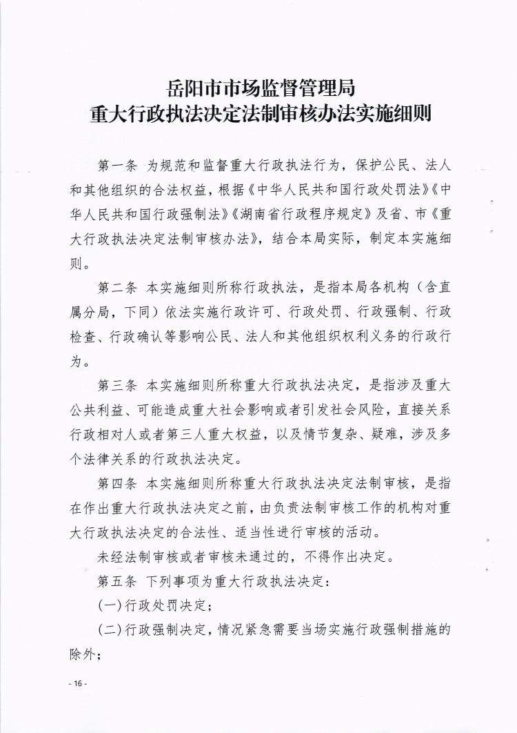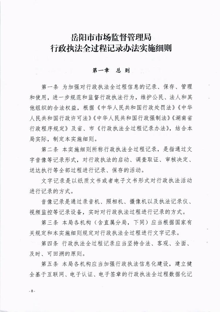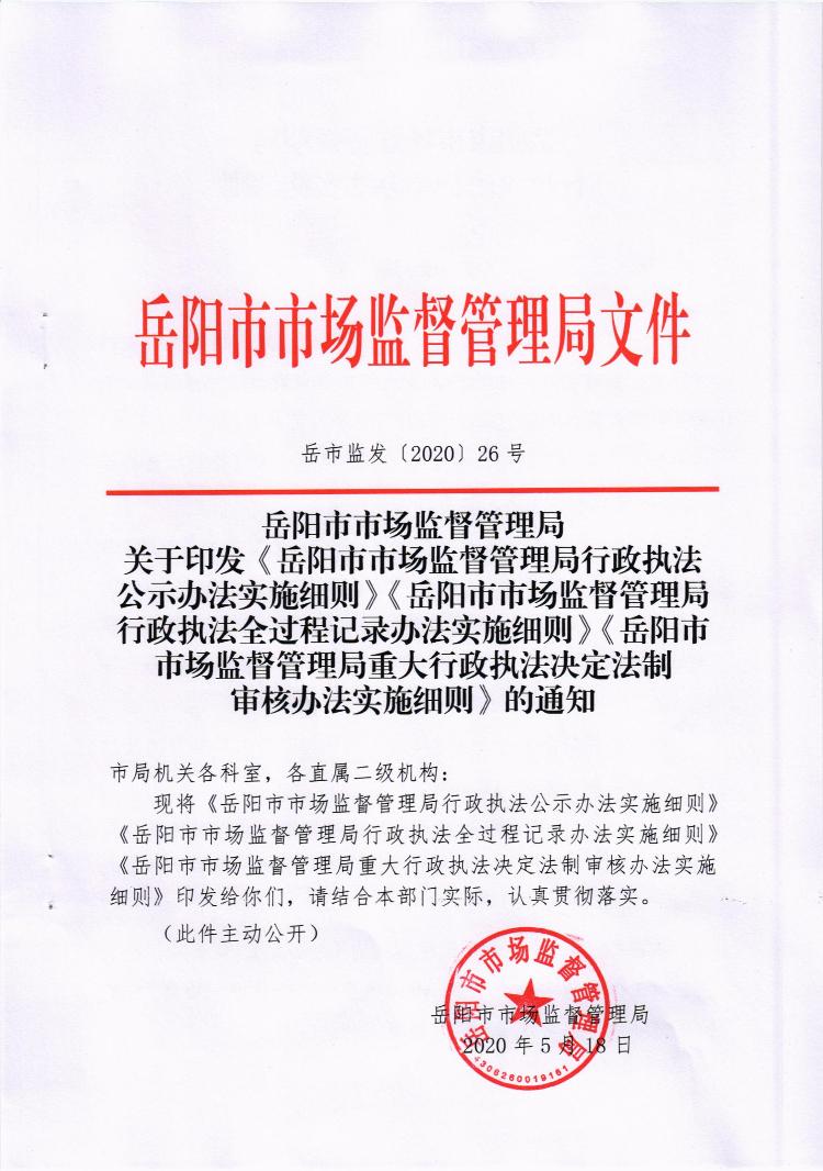 关于印发《岳阳市市场监督管理局行政执法公示办法实施细则》《岳阳市市场监督管理局行政执法全过程记录办法实施细则》《岳阳市市场监督管理局重大行政执法决定法制审核办法实施细则》的通知