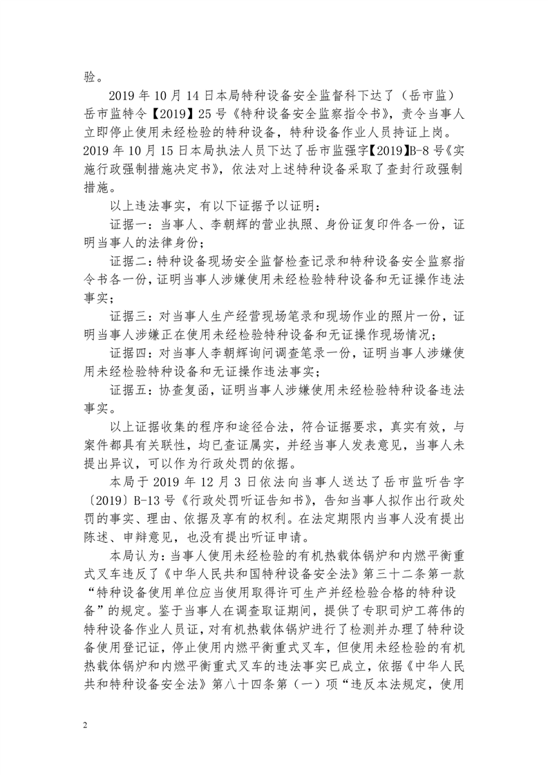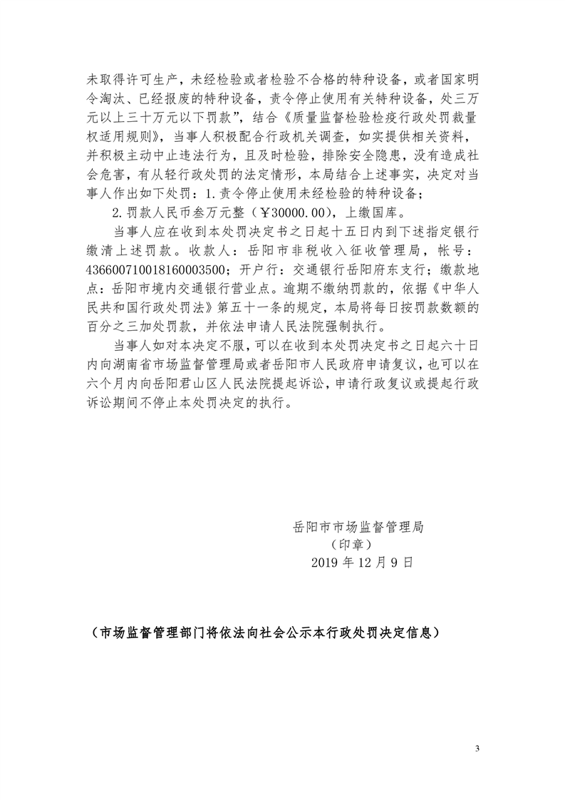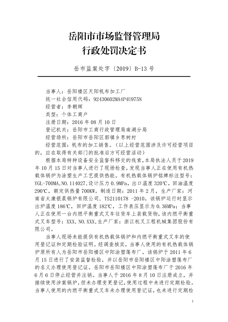 岳阳市市场监督管理局行政处罚决定书(岳市监案处字〔2019〕B-13号)