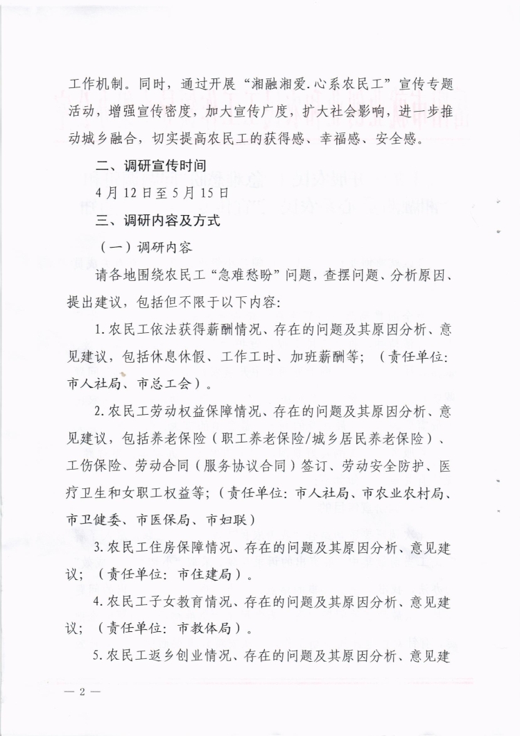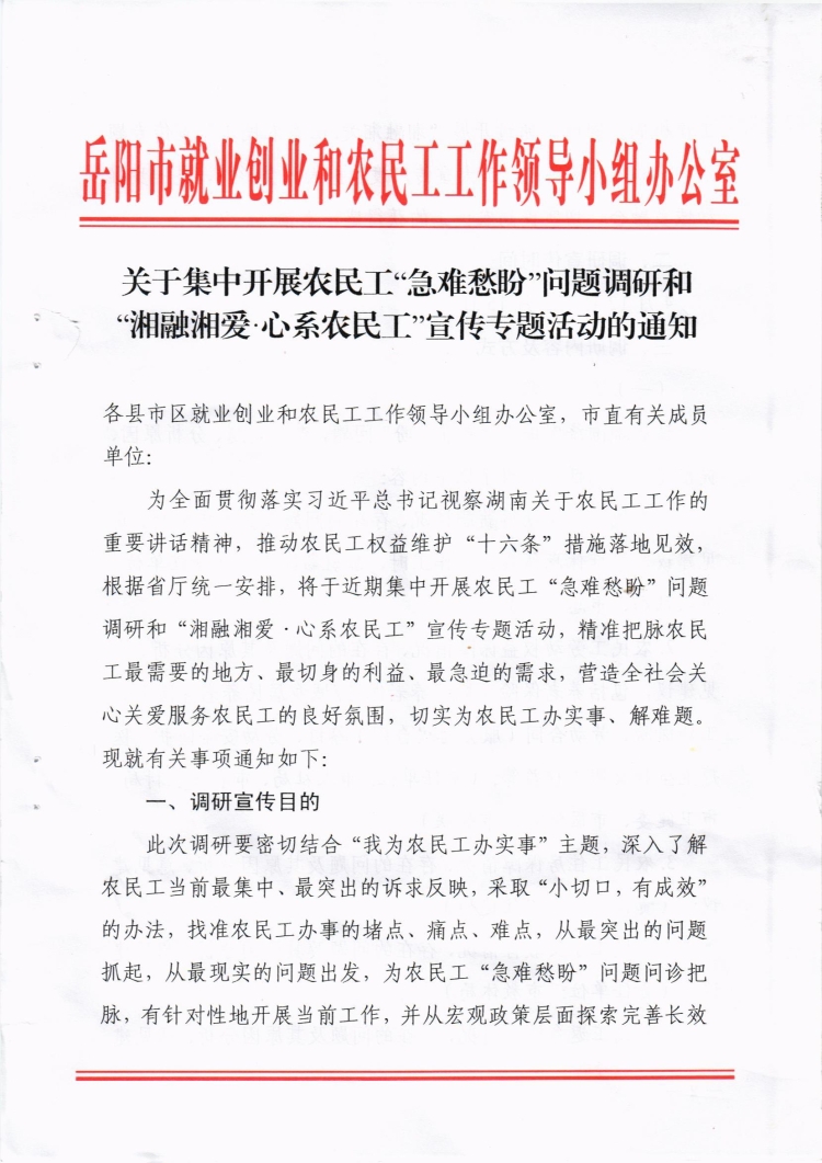 关于集中开展农民工“急难愁盼”问题调研和“湘融湘爱·心系农民工”宣传专题活动的通知