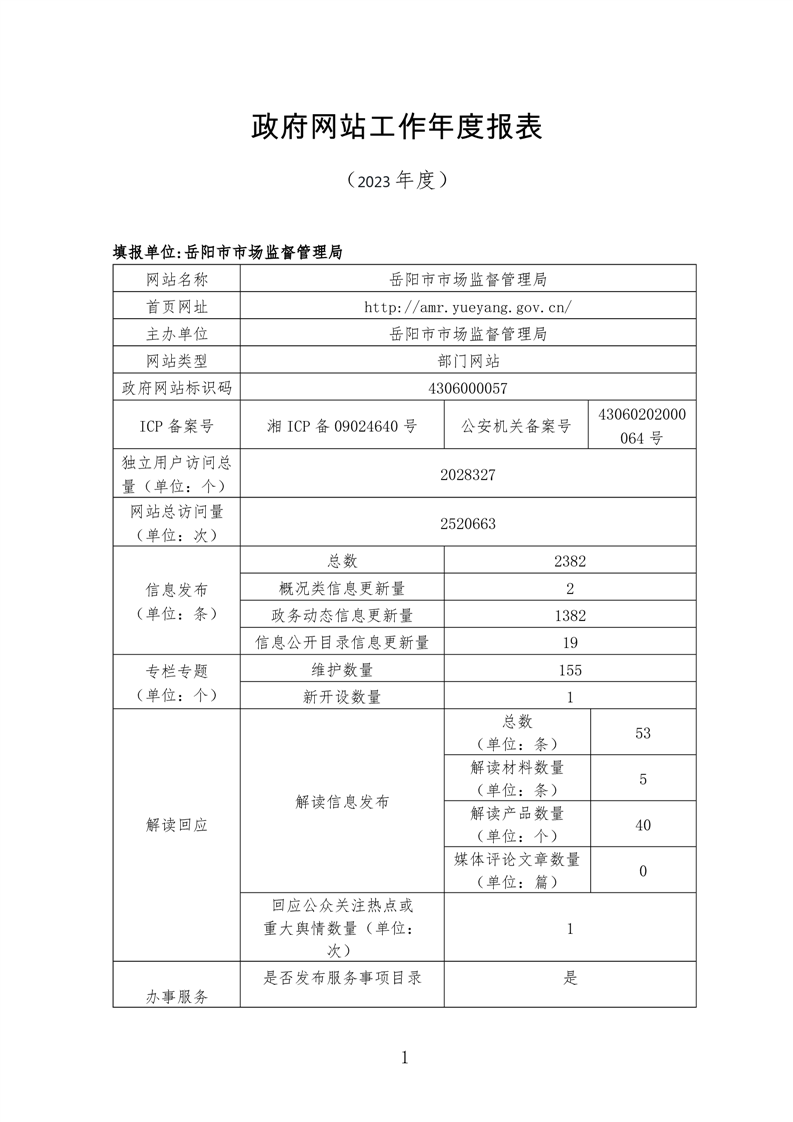 岳阳市市场监督管理局政府网站工作年度报表(2023年度)