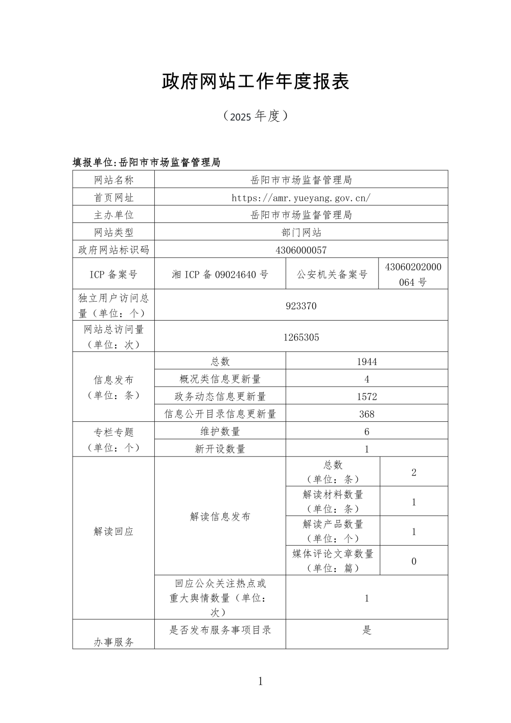 岳阳市市场监督管理局政府网站工作年度报表(2025年度)