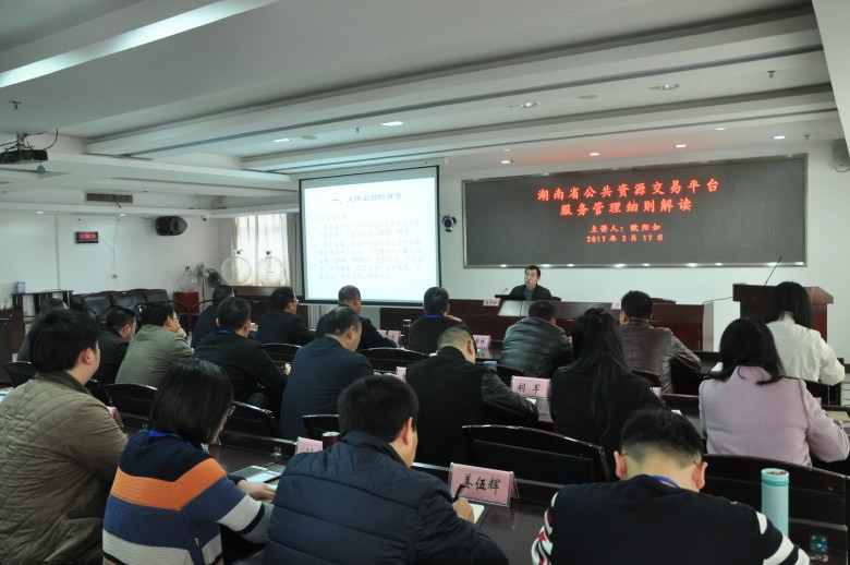 课堂在严谨认真又轻松活动的学习氛围中进行。中心办公室主任欧阳如从国家层面、省级层面、市级层面阐述了该文件出台的背景,并将湖南省公共资源交易平台服务管理细则逐条的进行了详尽的解读,也对照细则分别从加强对中心的管理、厘清与代理公司的分工、加强保证金收退管理、推进信息平台建设、加强交易过程管理等五个方面和大家探讨了今后工作需要完善的地方。课后,中心党组成员、副主任宋洁要求大家认真整理好自己的学习笔记,对讲课内容进行一次再学习、再领会、再思考。