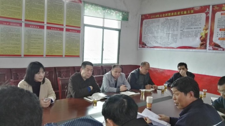 随后,调研组与村支两委在大仑村村部召开了现场办公会,听取了大仑村党支部书记尹再喜、中心驻村扶贫专干关于扶贫工作的情况汇报,刘月平、宋洁、付晓斌及中心相关科室负责人结合走访情况,就推进今年中心扶贫工作谈了自己的看法。