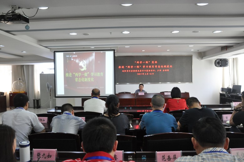 6月16日,市公共资源交易中心全体党员干部职工,在中心四楼会议室听取了中心党组书记、主任余国祥同志作的《推进“两学一做”学习教育常态化制度化》的专题党课。