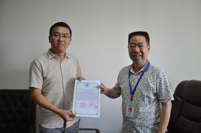 (图为中心党组书记、主任余国祥将网上竞得证明交与岳阳金碧置业有限公司相关工作人员)