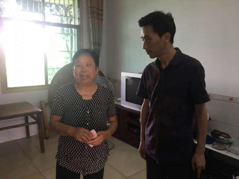 (图为中心机关党委邓从红慰问帮扶对象李德华)