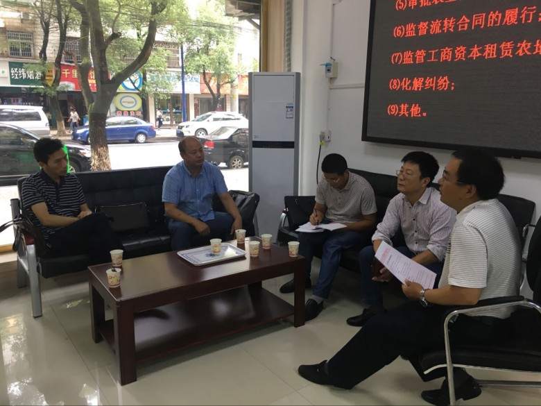 为进一步掌握和了解县、市、区农村土地承包经营权流转工作开展情况,扎实做好我市农村综合产权交易工作,9月21日,市公共资源交易中心党组成员、副主任付晓斌率领国有产权交易科的工作人员,赴岳阳县农村土地承包经营权流转服务中心进行调研考察。