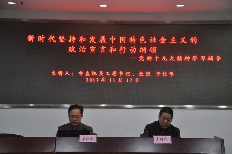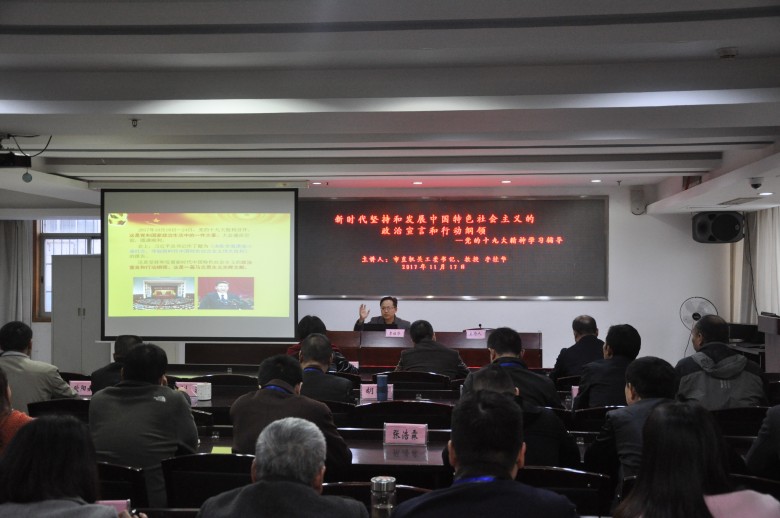 11月17日,中心全体党员干部职工在四楼会议室听取了市直机关工委书记、教授、市委十九大精神宣讲团成员李桂华同志作的《新时代坚持和发展中国特色社会主义的政治宣言和行动纲领》党的十九大精神学习专题党课。