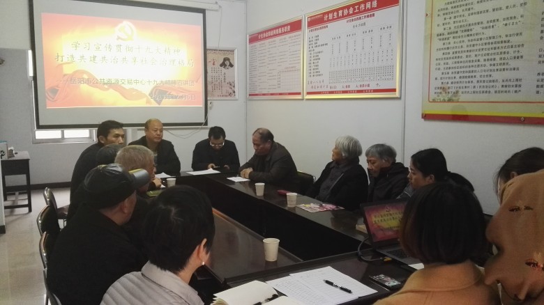 12月6日,在长虹社区会议室里举行了“学习宣传贯彻党的十九大精神,打造共建共治共享社会治理格局”岳阳市公共资源交易中心宣讲团十九大精神宣讲报告会。参加宣讲报告会的有社区老党员及社区工作人员。宣讲报告会由中心党组成员、副主任、机关党委书记刘月平主持。