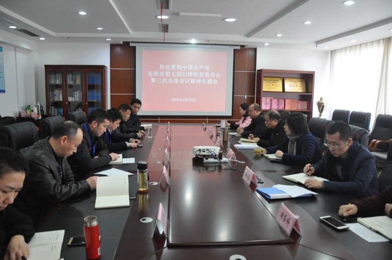 2月26日,中心召开传达贯彻中国共产党岳阳市第七届纪律检查委员会第三次全体会议精神专题会,会议由中心党组成员、副主任刘月平主持,中心党组成员、副主任宋洁、付晓斌及中心各科室负责人参加会议。