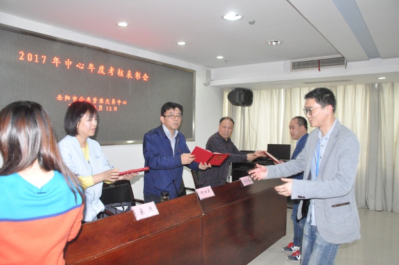 2018年4月13日,市公共资源交易中心召开年度考核表彰会,会议由中心党组成员、副主任刘月平主持,中心全体干部职工参会。会议首先由党组成员、副主任付晓斌宣读表彰通报,随后先进科室代表办公室、政府采购交易科,先进个人代表刘跃新、邱璟表达了获奖感言。