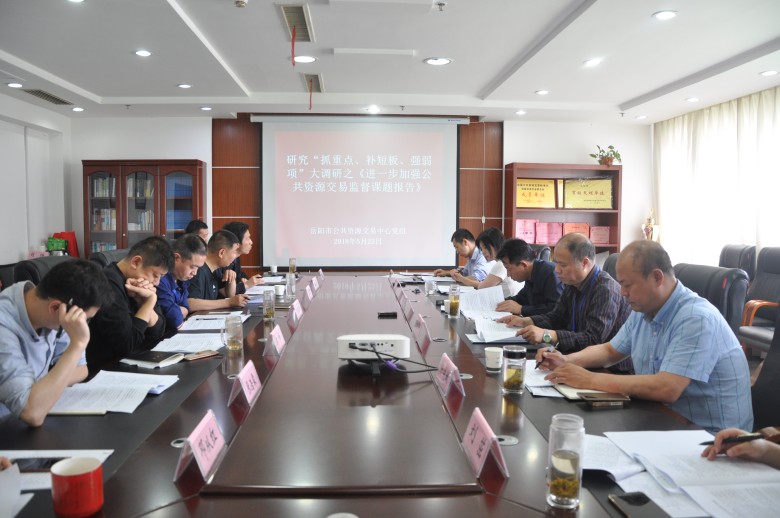 5月23日,中心党组书记、主任何四军主持召开党组(扩大会)专题研究“抓重点、补短板、强弱项”大调研课题报告,中心党组成员及各科室负责人参会。会议听取了办公室汇报《进一步加强公共资源交易监管课题报告(讨论稿)》,参会人员对报告内容进行了讨论并提出了修改意见。何四军肯定了调研取得的成果,要求进一步深入查找公共资源交易监管中存在的“短板”和“弱项”,提出切实可行的政策建议,推动构建分工明确、协调有序、执行有力的监管体系。