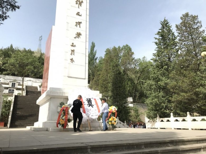 (图为中心组织干部职工到四八烈士陵园开展缅怀先烈,敬献花圈活动)