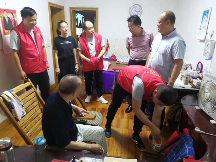 在社区主任的带领下,志愿者一行顶着高温走进残疾人家庭,给他们送去了油和月饼等生活物资以及慰问金。“最近身体怎么样?”“生活有没有什么困难?”每到一处,何四军同志都仔细询问他们的生活情况。残疾人李桂兰由于长期痛风导致手关节变形,还严重驼背,生活自理都有些困难,还要照顾小孙女,程健及其爱人均身患残疾,但他们依然在路边摆摊赚点生活费来维持生计,他们这种积极乐观的心态让每一位志愿者都为之感动。对志愿者的走访慰问,她们都非常激动,并对中心党组的关心表示感谢。
