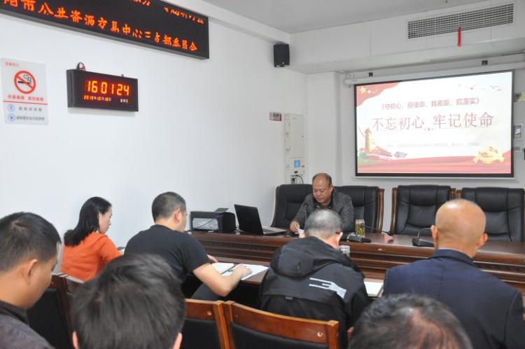 2019年10月18日下午,根据《岳阳市公共资源交易中心“不忘初心、牢记使命”主题教育实施方案》要求,中心三支部全体党员在三楼五标室上了一堂“不忘初心、牢记使命”主题党课。中心党组成员、副主任付晓斌讲了一堂主题党课,党课题目是:《不忘初心、牢记使命——守初心、担使命,找差距、抓落实》。
