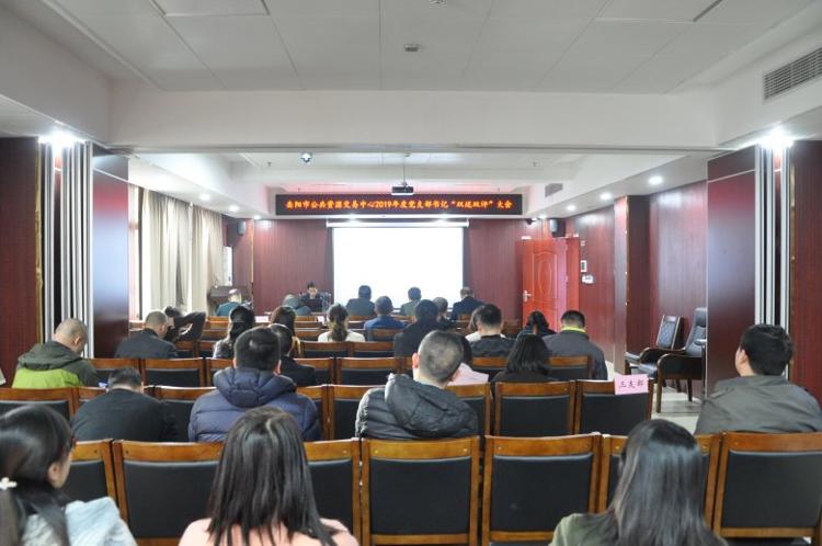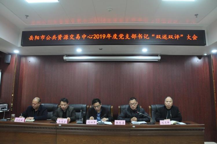 2019年12月6日,岳阳市公共资源交易中心召开基层党支部书记“双述双评”大会,会议由中心党组成员、副主任刘月平主持,市直机关工委组织部部长张志勇、副部长马克宏参加会议。会议有三项议程:第一项议程:由中心三位支部书记述职,机关党委书记付晓斌点评,各支部全体党员进行民主测评;第二项议程:市直机关工委组织部部长张志勇讲话;第三项议程:中心党组书记、主任何四军讲话。