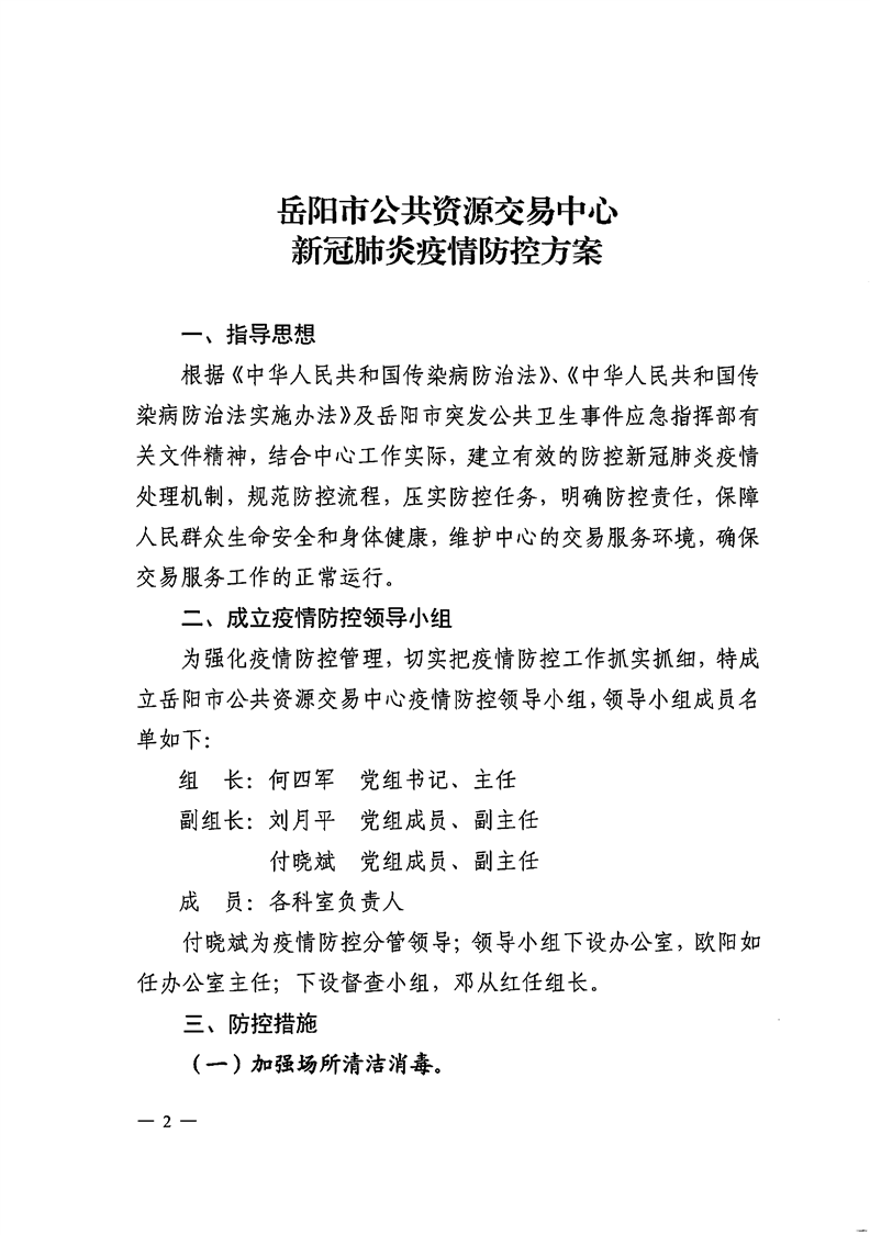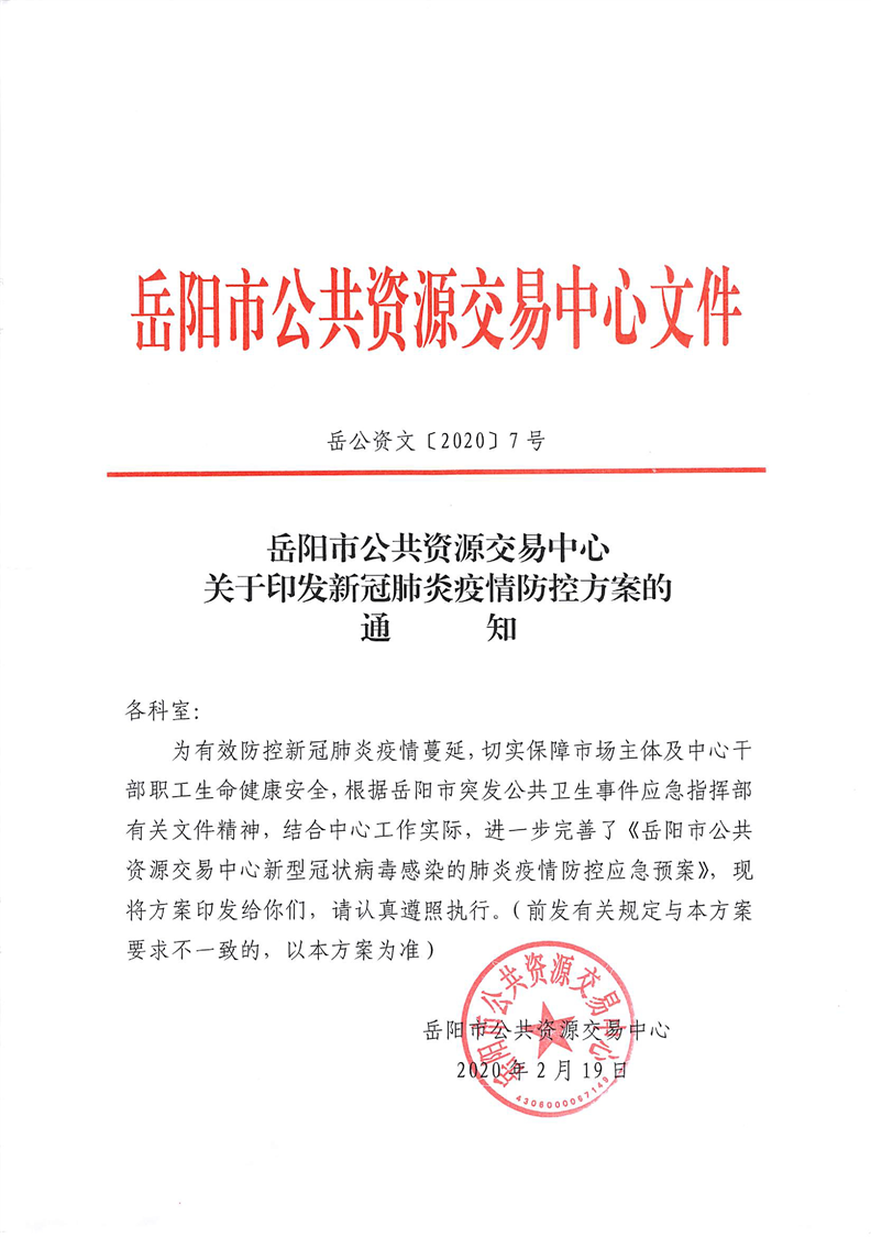 岳阳市交易中心关于印发新冠肺炎疫情防控方案的通知