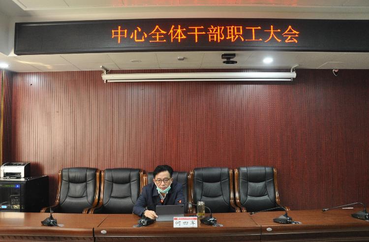 3月10日下午,中心在二楼一标室召开了全体干部职工大会,党组书记、主任何四军主持并讲话。