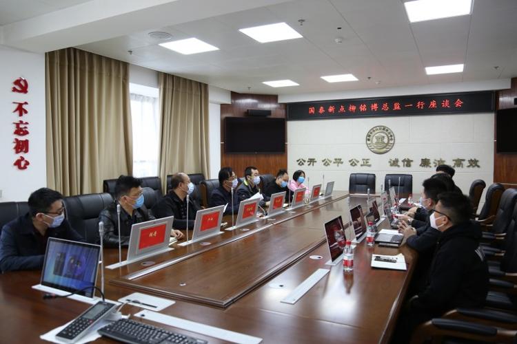 3月19日,中心党组书记、主任何四军、党组成员、副主任付晓斌与国泰新点公司总监柳铭博一行就推进电子化招投标系统优化进行交流探讨,中心综合科、信息技术科参加。