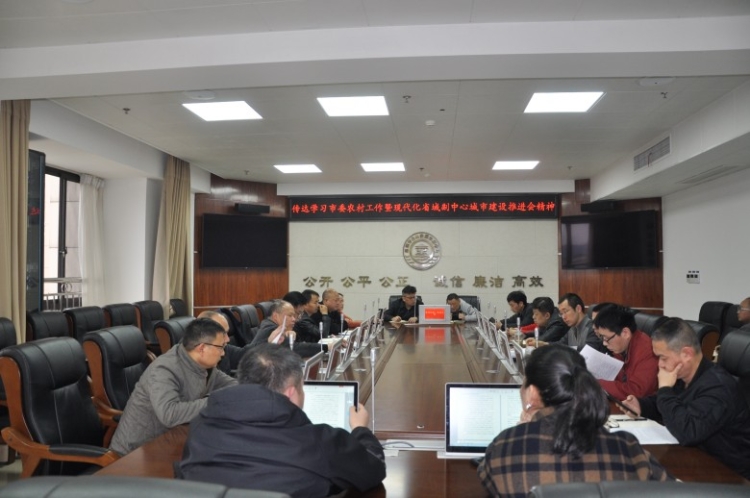 3月5日下午,中心在六楼会议室召开传达市委农村工作暨现代化省域副中心城市建设推进会精神会议,中心党组书记、主任何四军主持会议,中心党组成员、副主任刘月平、付晓斌,各科室负责人参会。
