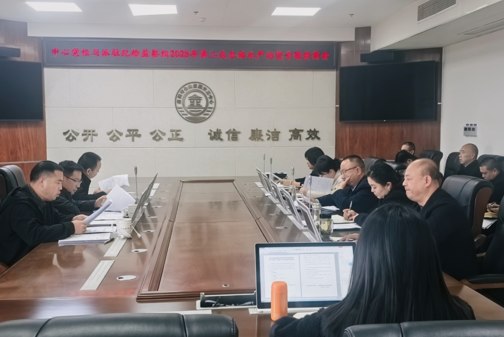 2025年12月25日,市公共资源交易中心党组与驻市发改委纪检监察组召开2025年度第二次全面从严治党专题会商会,会议由中心党组书记万俊锋主持,市纪委监委驻市发改委纪检监察组组长高峰、副组长何灿红,中心班子成员及各部室负责人参加会议,市纪委监委第二纪检监察室副主任任才到会指导。