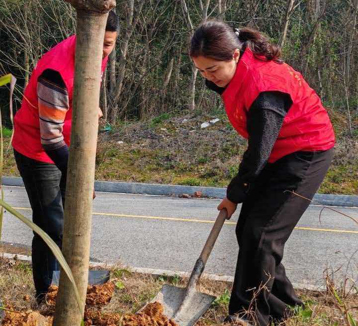 随后,干部职工们自发分成若干小组,分工协作、默契配合,挖坑、扶苗、培土、浇水,每一道工序都认真细致、有条不紊。大家干劲十足、热情高涨,挥锹铲土的身影、此起彼伏的欢声笑语,用汗水浇灌希望,用行动践行使命。