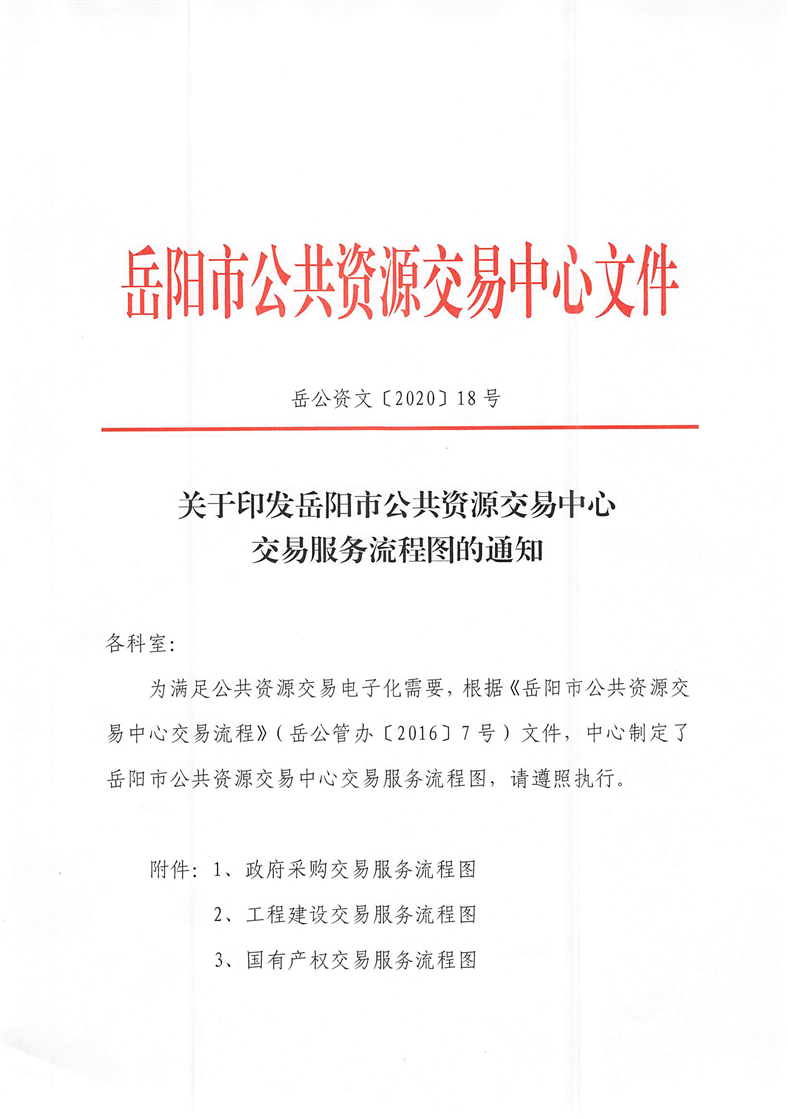 关于印发岳阳市公共资源交易中心交易服务流程图的通知