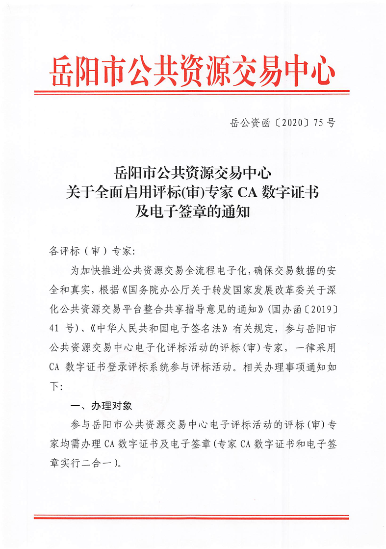 关于全面启用评标(审)专家CA数字证书及电子签章的通知
