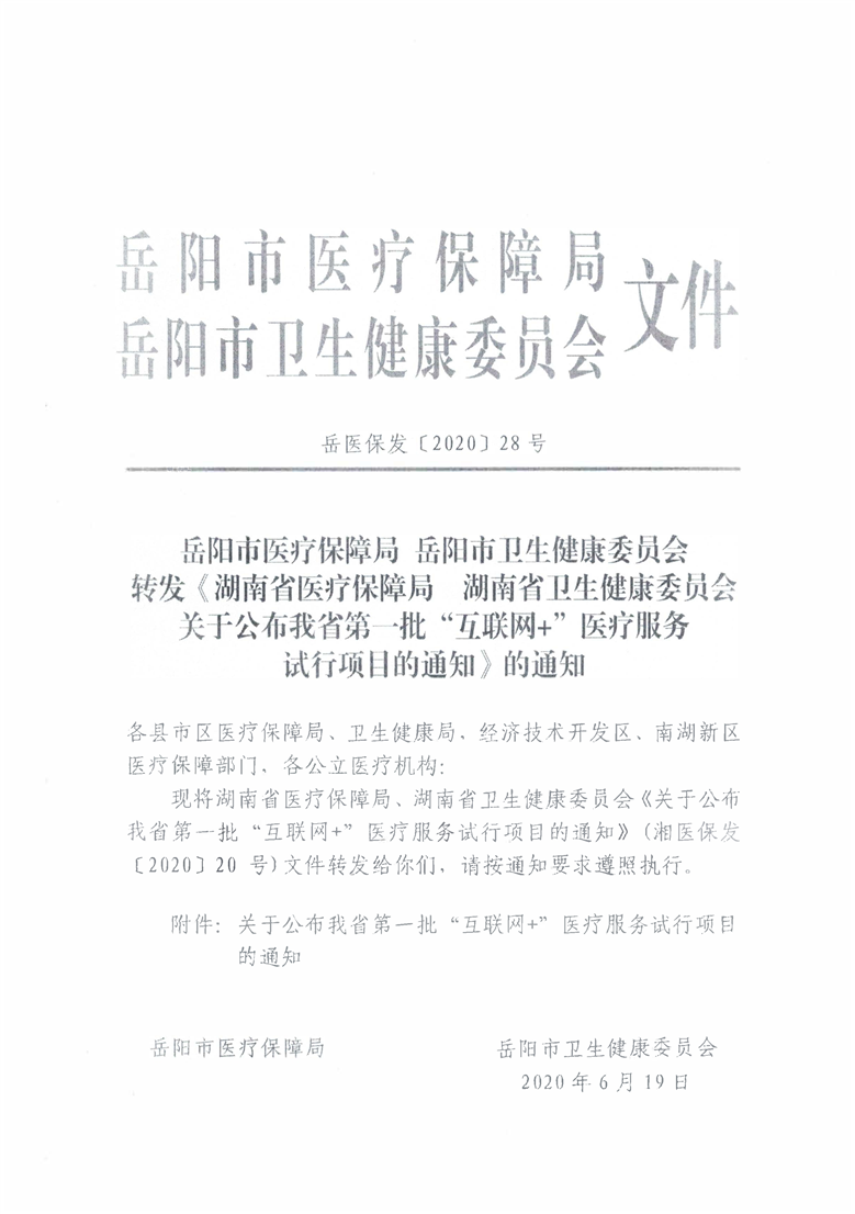 转发《关于公布我省第一批“互联网+”医疗服务试行项目的通知》的通知