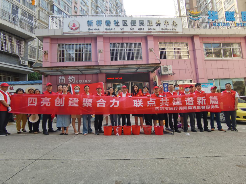 通讯员 陈九铭 为进一步美化市级区域环境,助力创建全国文明城市,7月8日,岳阳市医疗保障局机关党委组织党员开展志愿服务主题党日活动,亮出党员示范身份,对新桥巷社区范围内进行大清洁、大清扫。
