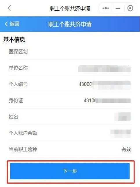 (二)第二步:确认参保信息,在个人账户有余额且参保状态正常的情况下,点击下一步。