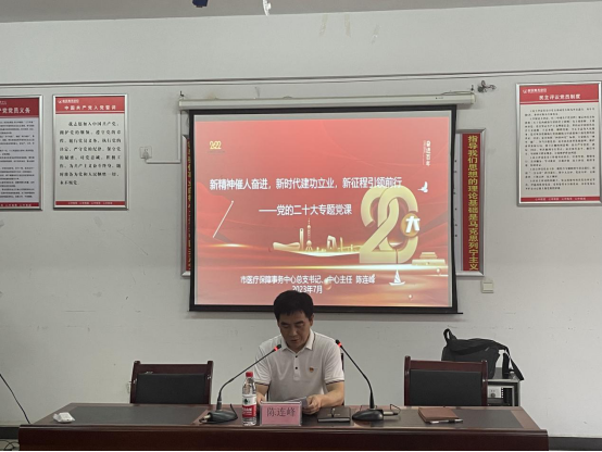 6月27日,市医疗保障事务中心总支书记、中心主任陈连峰在新桥巷社区支部党员大会上作题为《新精神催人奋进,新时代建功立业,新征程引领前行》的二十大主题党课,围绕二十大精神核心要义、推进党的政治建设新的伟大工程在医保落地生根和医保最新政策进行深入浅出、全面系统的阐释和解读。
