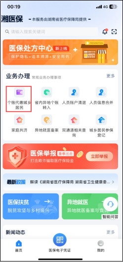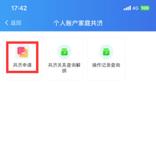2、如果您已激活电子凭证,在首页进入“家庭共济”功能,进行共济关系绑定。
