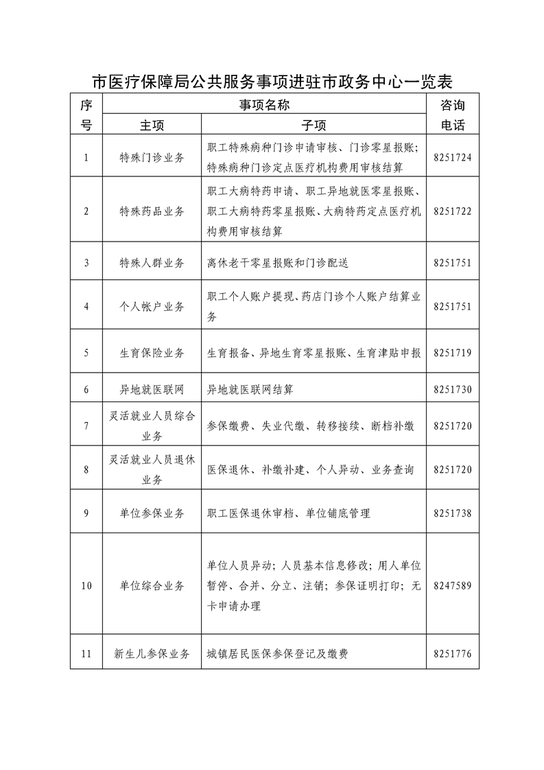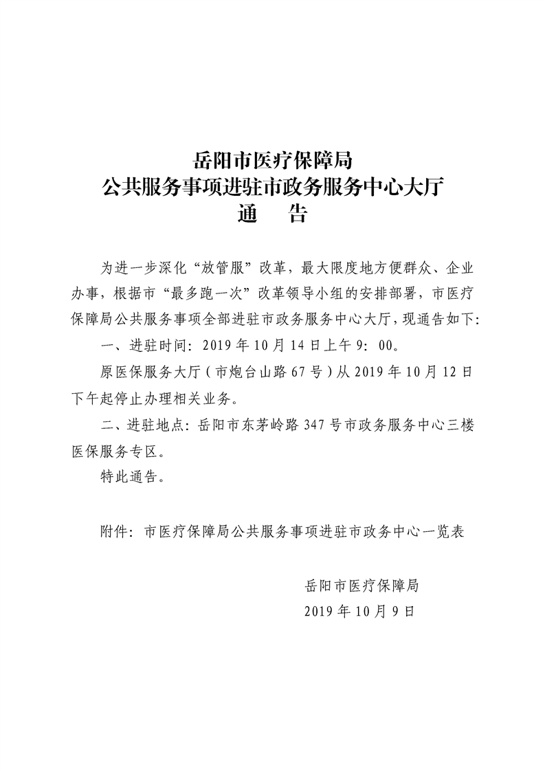 岳阳市医疗保障局公共服务事项进驻市政务服务中心大厅通告