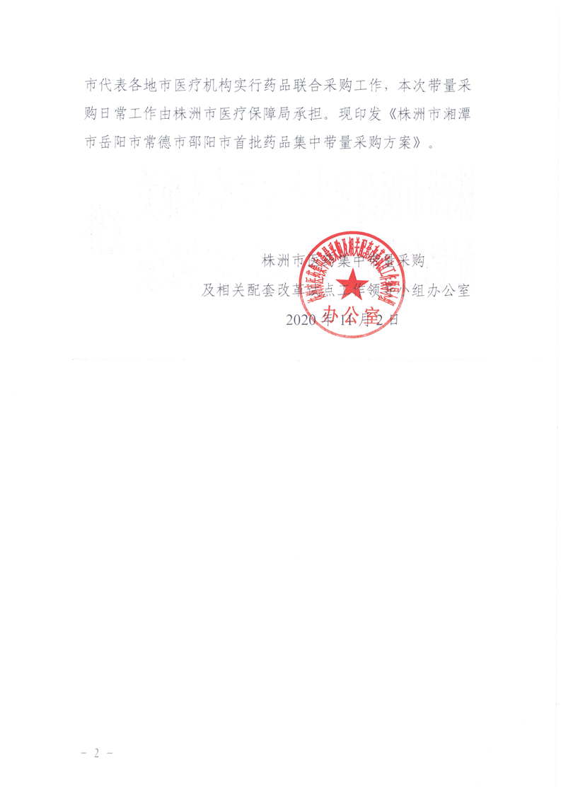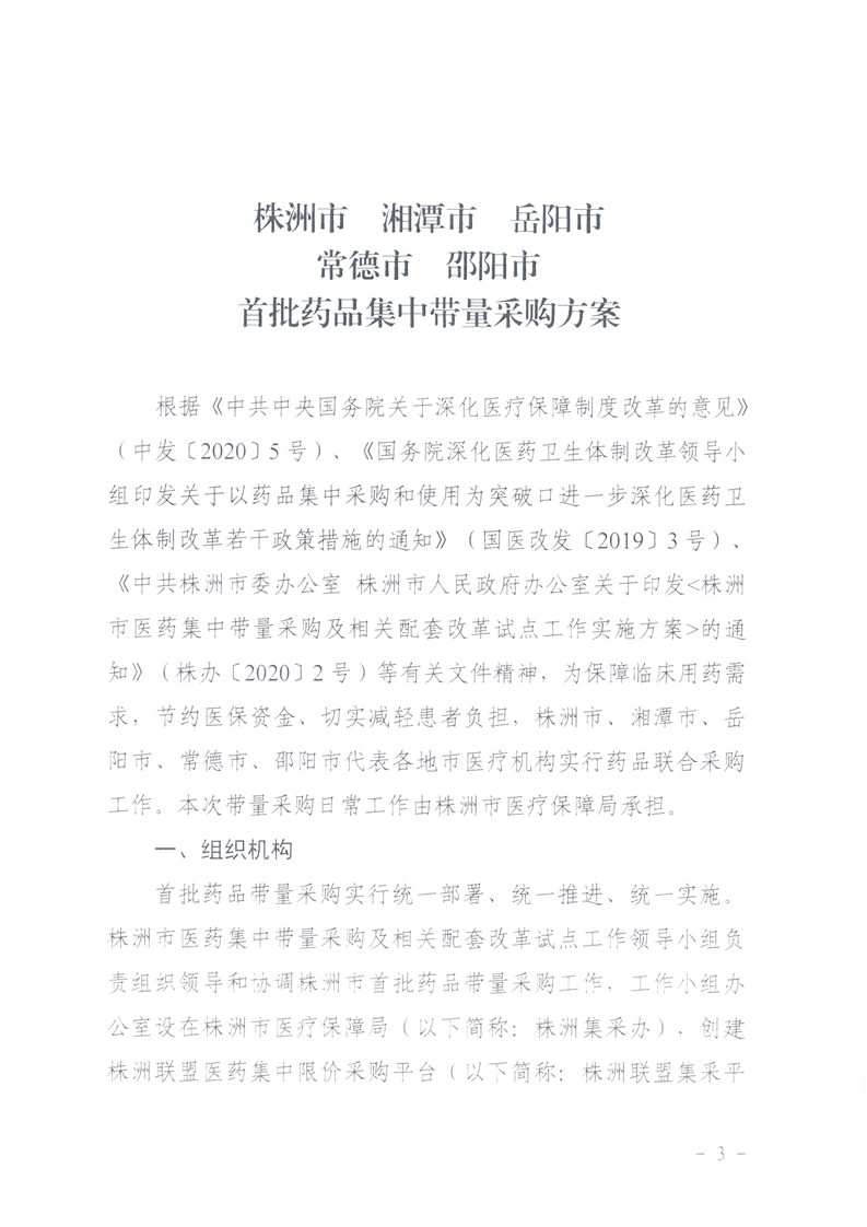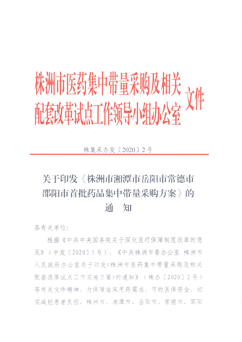 关于印发《株洲市湘潭市岳阳市常德市邵阳市首批药品集中带量采购方案》的通知