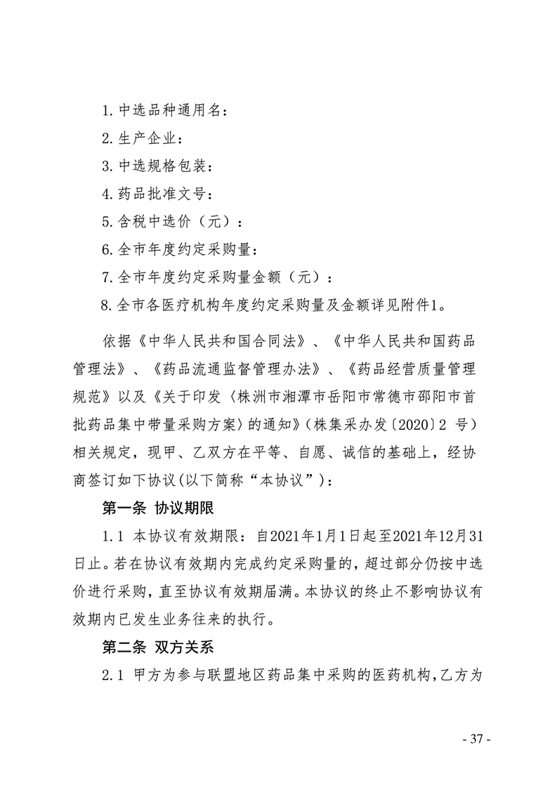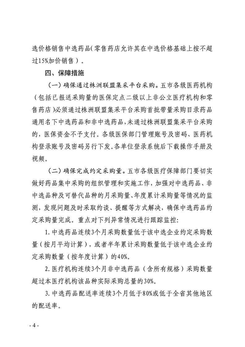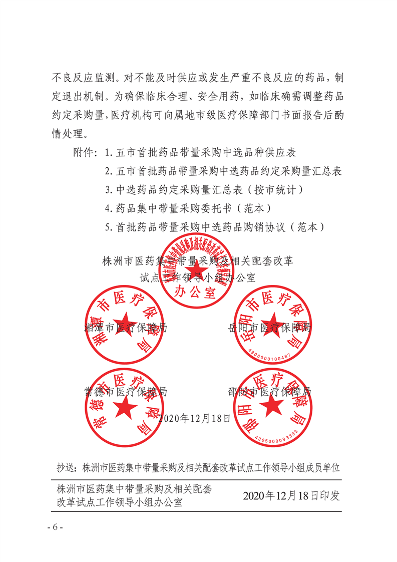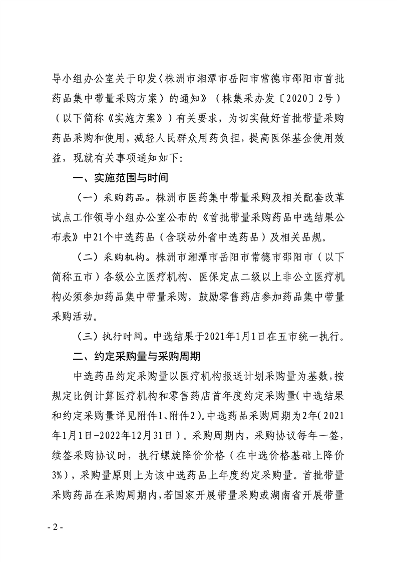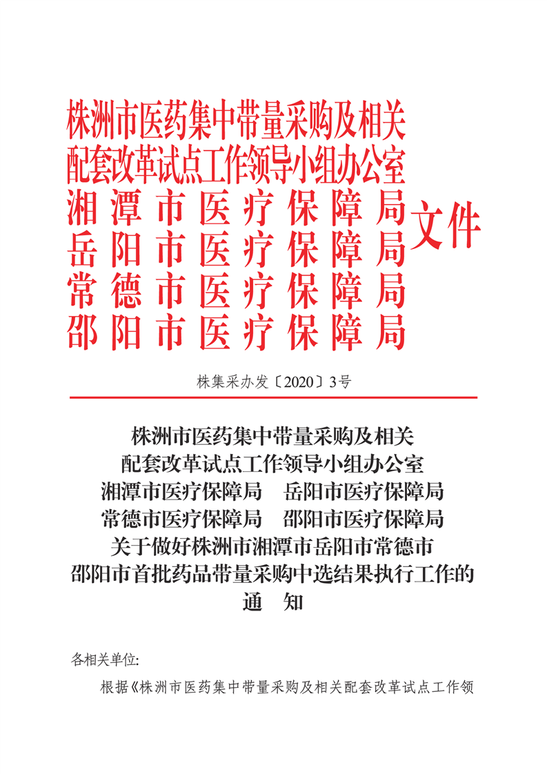关于做好株洲市湘潭市岳阳市常德市邵阳市首批药品带量采购中选结果执行工作的通知