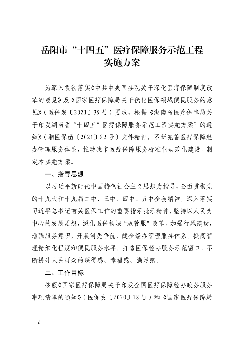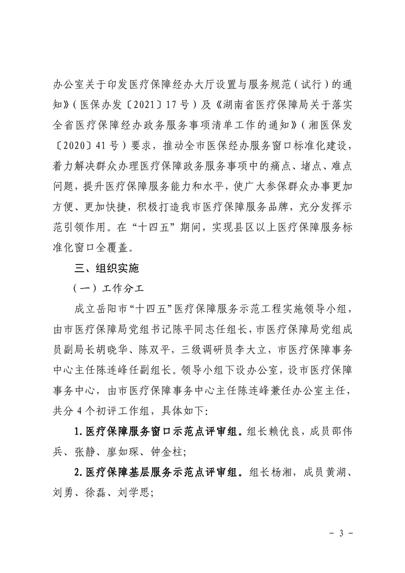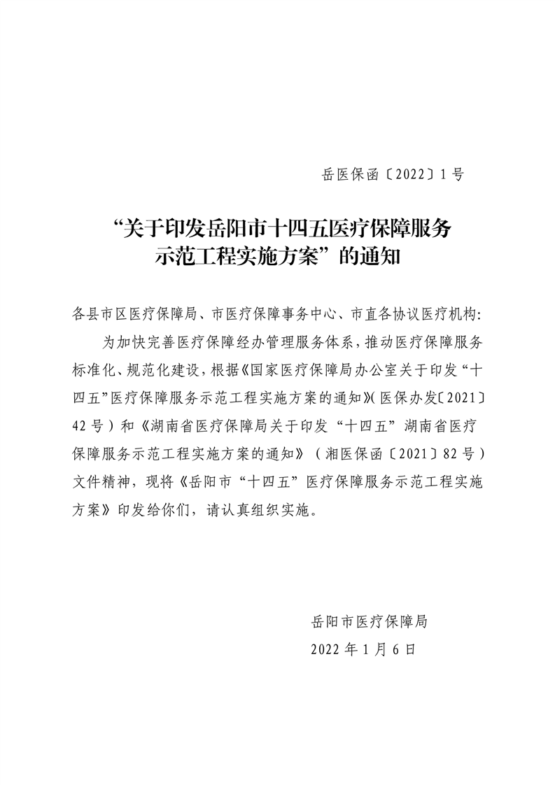 “关于印发岳阳市十四五医疗保障服务示范工程实施方案”的通知
