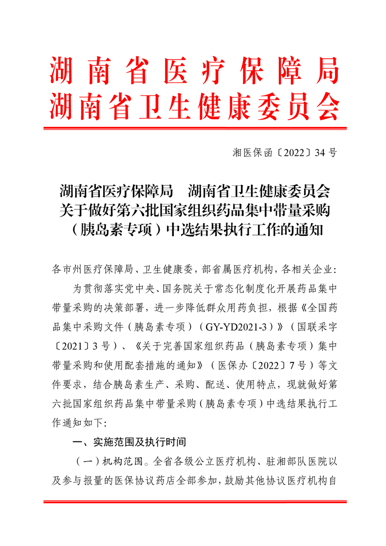 岳医保函〔2022〕19号--转发《关于做好第六批国家组织药品集中带量采购(胰岛素专项)中选结果执行工作的通知》