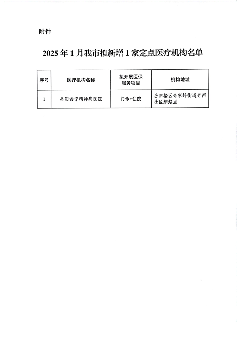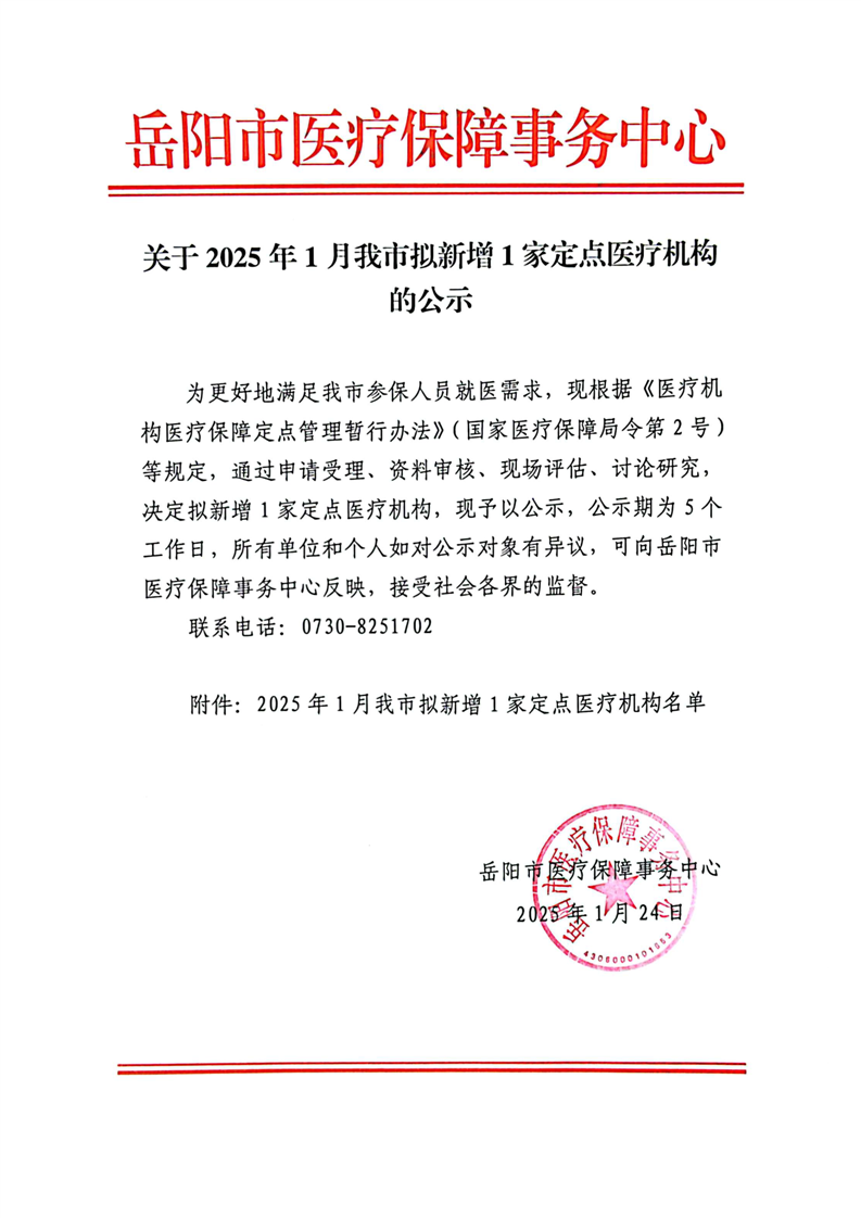 关于2025年1月我市拟新增1家定点医疗机构的公示