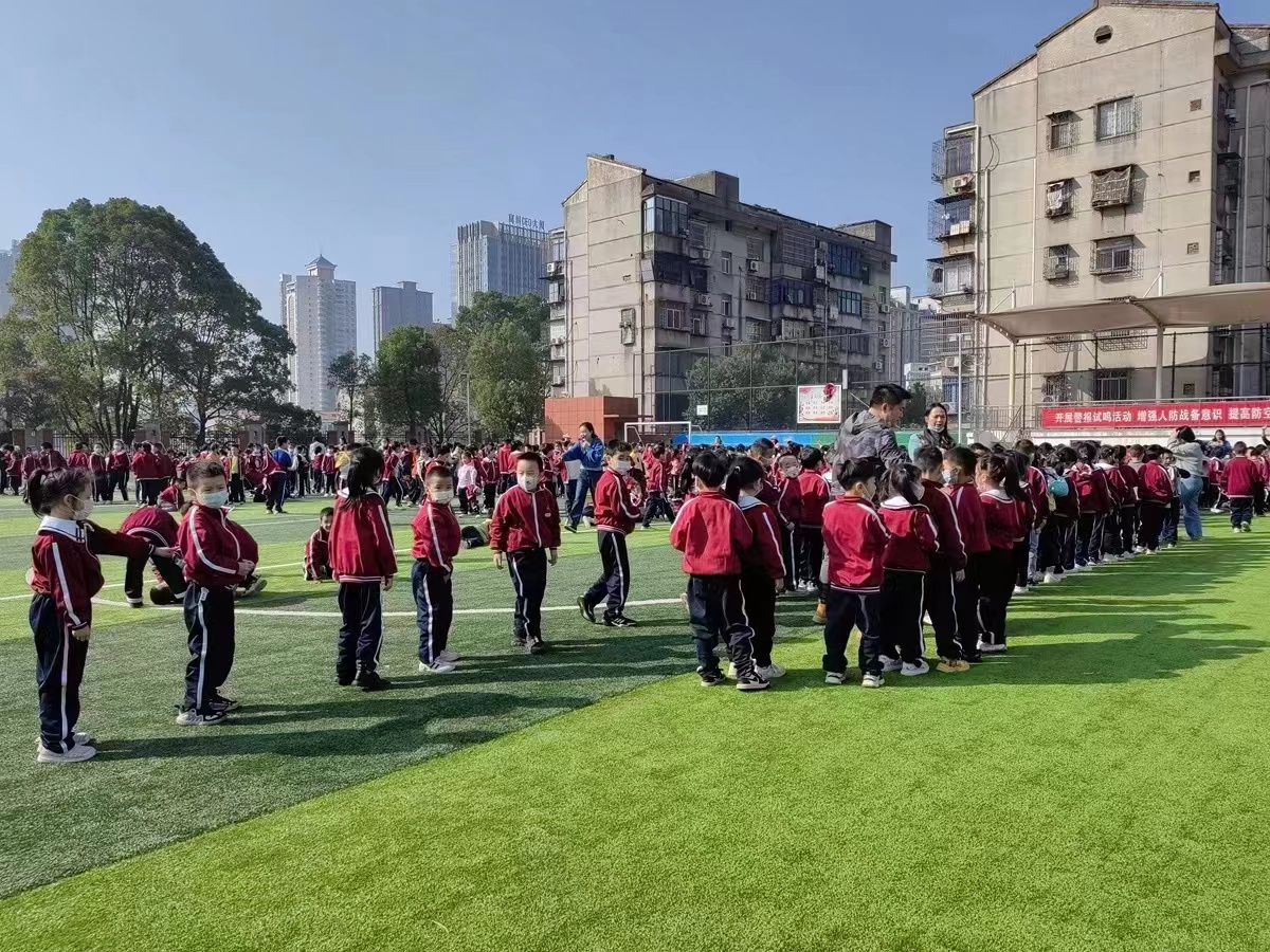 09时30分,预先警报响起,人防疏散演习正式开始。岳阳楼区白杨坡小学一、二年级各班级教师,按照指定路线有序向就近的操场疏散撤离。