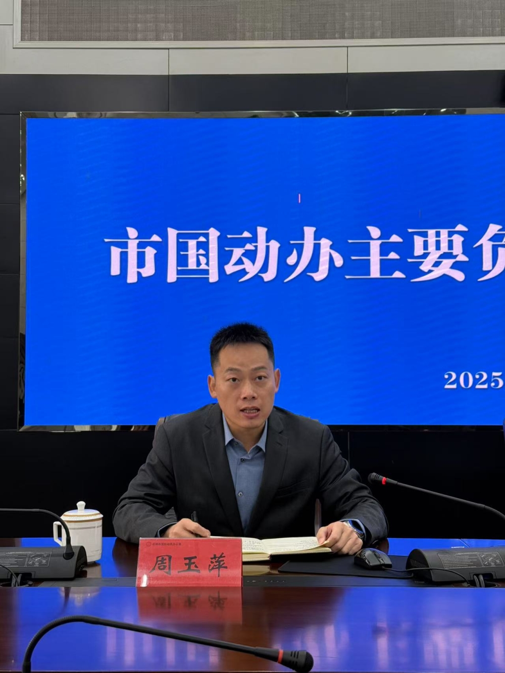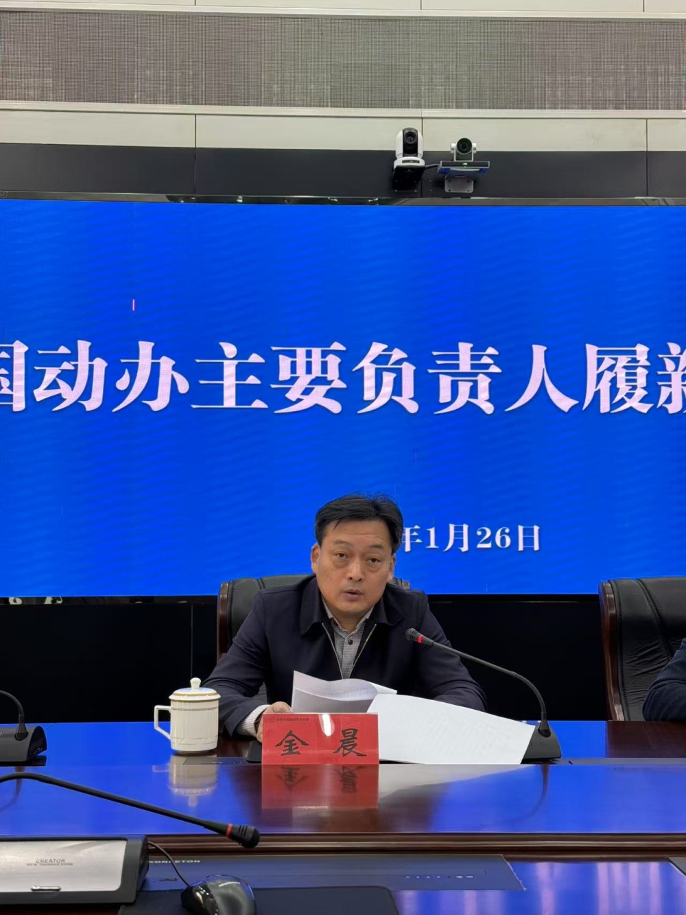 金晨介绍了周玉萍同志的情况。他在讲话中指出,市国动办党组班子和党员干部,要坚决服从市委决定,全力支持周玉萍同志的工作,真抓实干、担当作为,以实际行动回报组织的关心信任;要全力以赴抓好工作,加快构建“平时能服务,急时能应急,战时能应战”的国防动员力量体系,推动全市国防动员工作高质量发展;要持续加强队伍建设,指导党员干部用党的创新思想统一思想、统一意识、统一行动,不断增强政治判断力、政治领悟力、政治执行力。