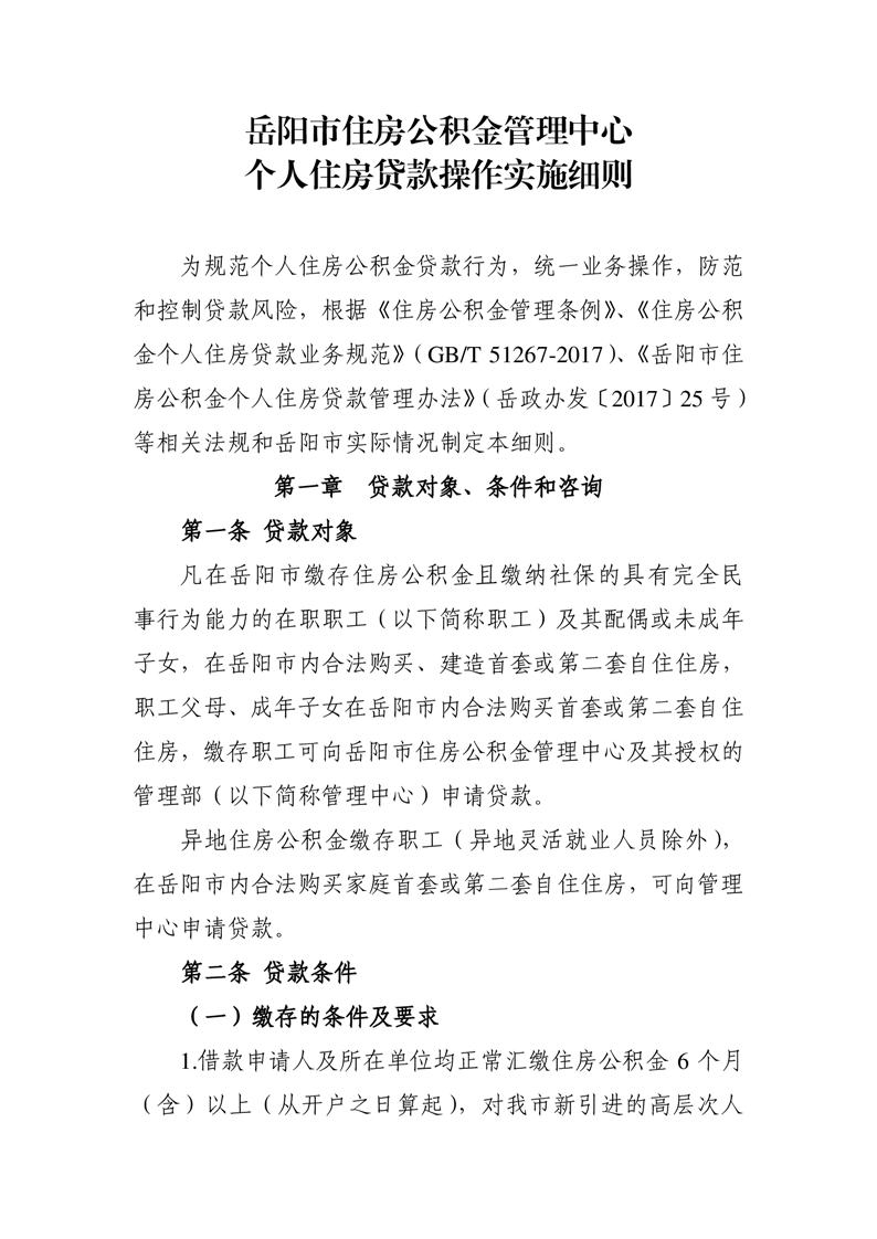 关于印发《岳阳市住房公积金管理中心个人住房贷款操作实施细则》《岳阳市住房公积金管理中心提取操作实施细则》的通知