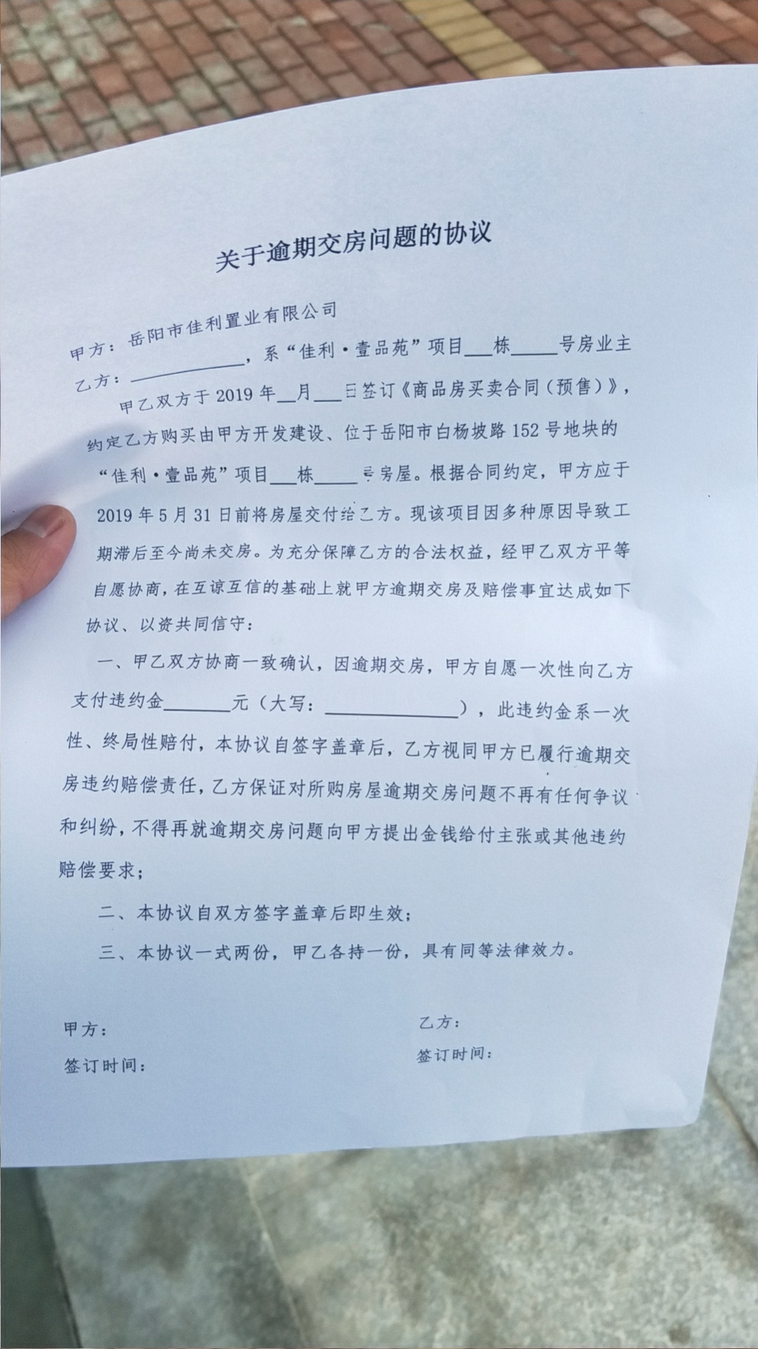 您好!您咨询关于求助: 佳利·壹品苑延期交房问题的问题已收悉,现经市开发服务中心核实处理后,回复如下: