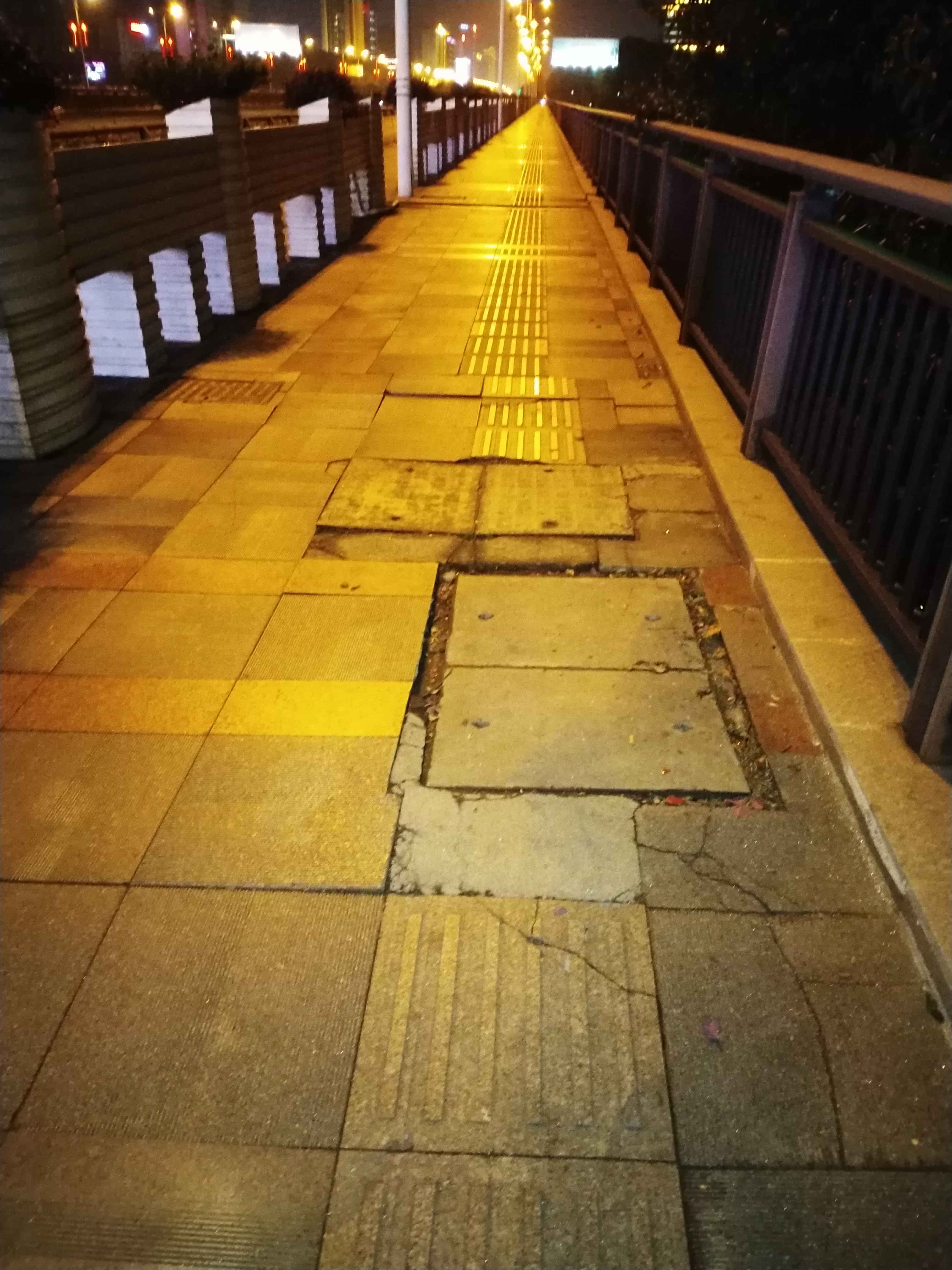 王家河大桥南侧人行道上盲道凹凸不平,不要说残障人士,就是正常人行走也容易崴脚。建议市政部门加强维护。