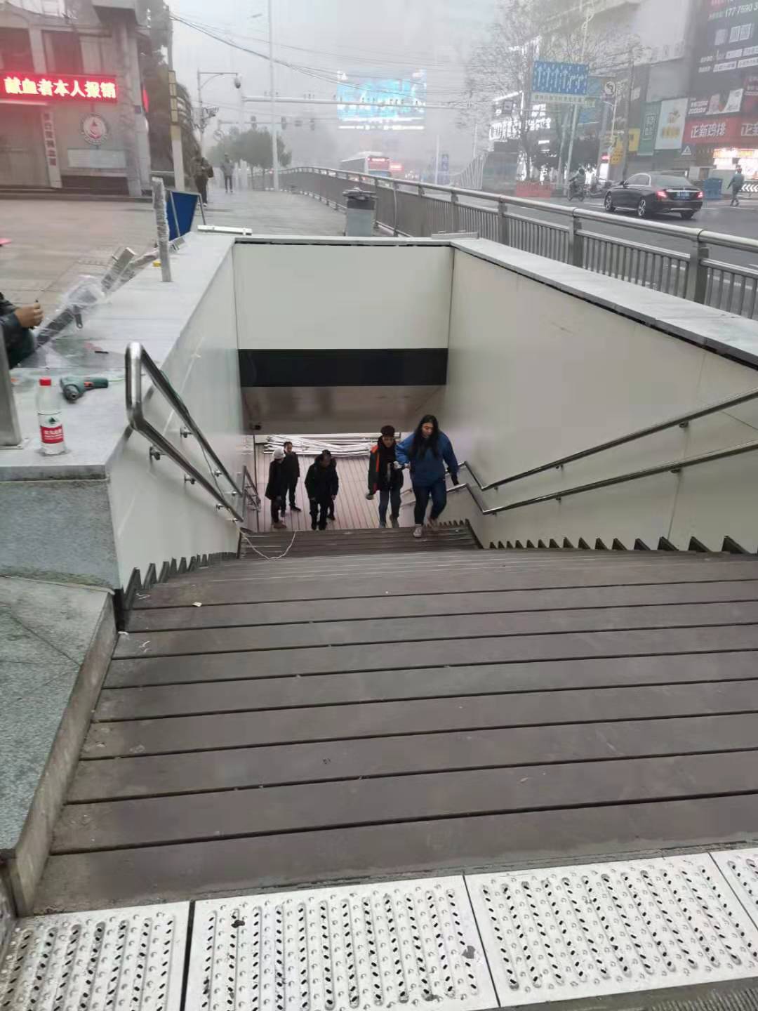步行街地下通道已接近完工,我去看了一下。总体看确实大方、气派,但是有一个突出的问题,就是缺乏无障碍设施,老、弱、病、残、孕和负重者基本无法下到地下通道,而围绕地下通道四周,都用高大上的护栏阻断行人过马路的通道,令老、弱、病、残、孕和负重者望路兴叹,无可奈何。