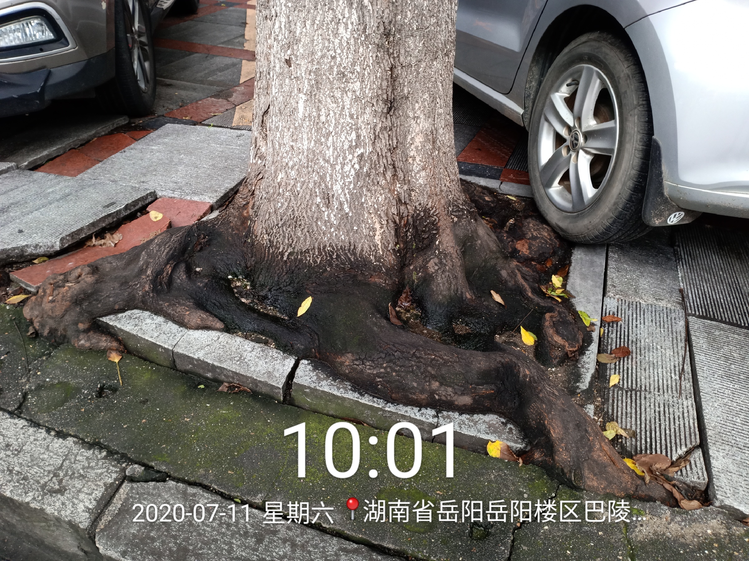 请保护好市区道路边的大树。今上岳阳,再次见到大树根的石头水泥缝隙中,感到不悦。希望城建投部门保护这么好的树。