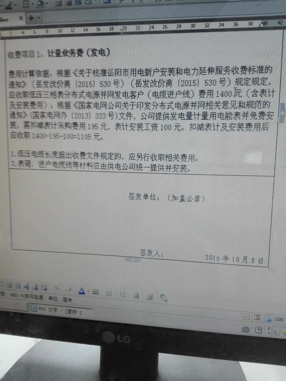 2、目前省市价格主管部门没有对申请光伏发电并网的收费标准予以明确,电力部门不能参照岳阳市发展和改革委员会(岳发改价商【2015】530号)“关于核准岳阳市用电新户安装和电力延伸服务收费标准的通知”文件的相关标准收费。