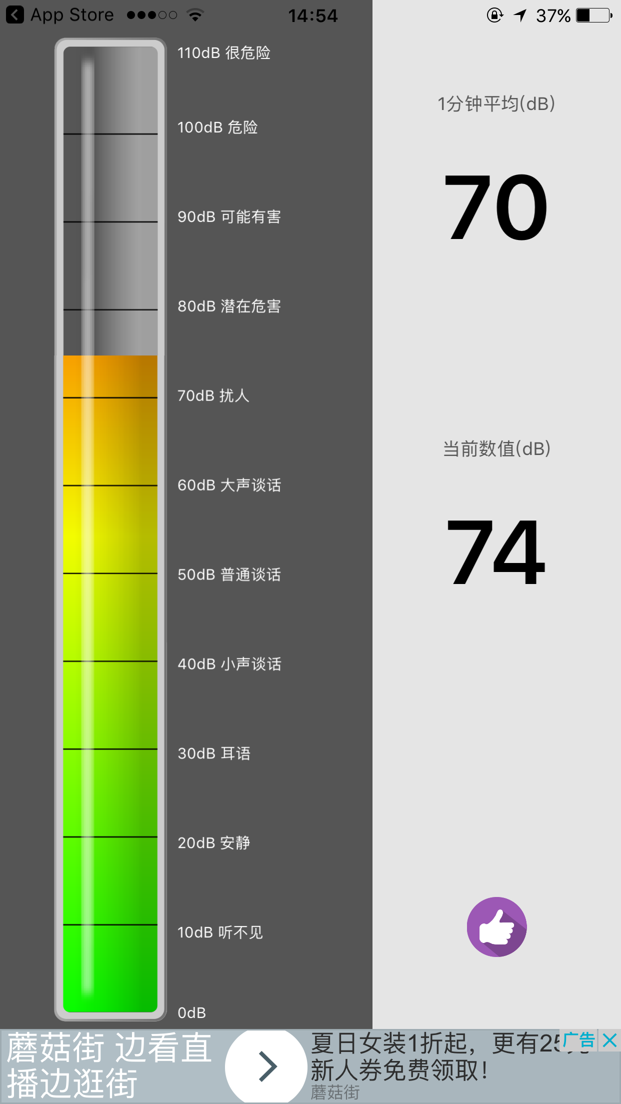 噪音分贝:70-74左右