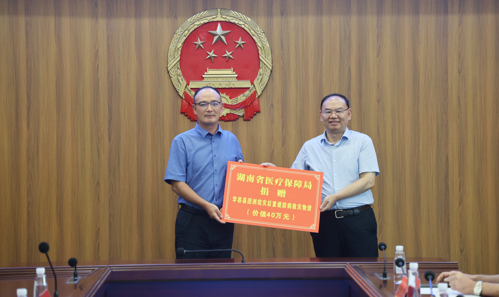 8月21日,湖南省医疗保障局党组成员伍国用一行到华容县调研灾后重建及医疗保障工作,并向团洲垸捐赠价值40万元的防病救灾医疗物资。岳阳市医疗保障局党组书记、局长黄岳四,华容县委书记陶伟军,县委副书记张岳平,县委常委、副县长涂娟及相关负责人参加。